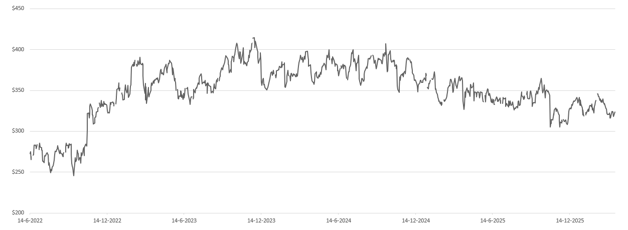 - Financiële discipline en aandeelhoudersrendement: Hoge kredietratings ondersteunen de aandeleninkoopprogramma's ($ 800 miljoen in 2025, voorzetting in 2026) en een jaarlijks dividend van $ 8 per aandeel.