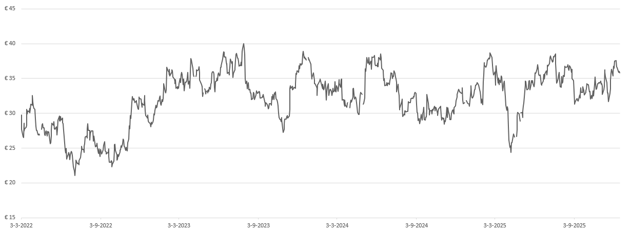 De koers van Infineon beweegt al ruim drie jaar zijwaarts, maar een nieuwe groeiperiode lijkt aanstaande. Terwijl de aandelenmarkt rekening houdt op een jaarlijkse winstgroei van 12%, verwachten analisten een forsere stijging van gemiddeld 20% per jaar. Als Infineon deze groei daadwerkelijk behaalt, zou de winst per aandeel groeien van € 1,39 in 2024 naar € 2,91 in 2029. Dankzij de conservatieve waardering in de markt is het aandeel relatief goedkoop. Beleggers kunnen in februari een dividend van naar verwachting € 0,34 tegemoet zien (1% rendement), waarbij een jaarlijkse dividendgroei van 10% wordt voorzien. Infineon heeft momenteel geen aandeleninkoopprogramma, het bedrijf geeft er de voorkeur aan om zijn vrije kasstroom volledig in innovatie investeren.