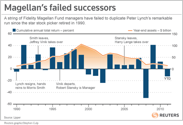 Peter Lynch, de manager van het fonds in de periode 1977-1990, heeft uitgerekend dat van het jaarlijkse rendement van 29%, de gemiddelde beleggers slechts 7% had behaald door steeds op in te stappen na een positieve periode en weer uit te stappen na een daling. Over de gehele periode van 13 jaar leidt 29% tot een totaal rendement van 2640% en 7% tot 141%. In dit was het gedrag van beleggers dus extreem kostbaar.