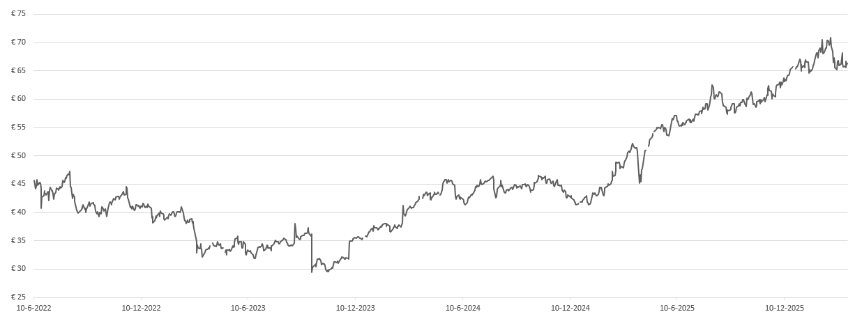 Hoewel het misschien een saai aandeel lijkt, liggen er voor beleggers wel degelijk kansen voor een aantrekkelijk rendement zonder al te grote risico’s. NN gebruikt fusies en overnames om geleidelijk zijn marktstrategie te innoveren, aanpassen en uitbreiden. NN staat bekend als een “dividendmachine”, waarbij een aanzienlijk deel van de winst wordt uitgekeerd aan aandeelhouders. De resultaten van 2025 geven vertrouwen in de bedrijfsvoering richting de komende jaren, onder andere door de sterke kapitaalgeneratie. De waardering is aantrekkelijk, zeker ook gezien hun sterke positie (35%-40%) in de nieuwe Nederlandse pensioenmarkt. Het bedrijf is financieel gezond met een hoge solvabiliteitsratio en mocht de huidige rente gaan stijgen dan is dat zeker gunstig voor de winstgevendheid van de levensverzekeringsactiviteiten.